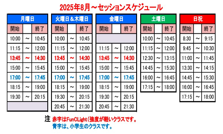 ※中学生以上の方は、小学生クラス以外のFunC Lightを含めた全クラスに参加可能です。